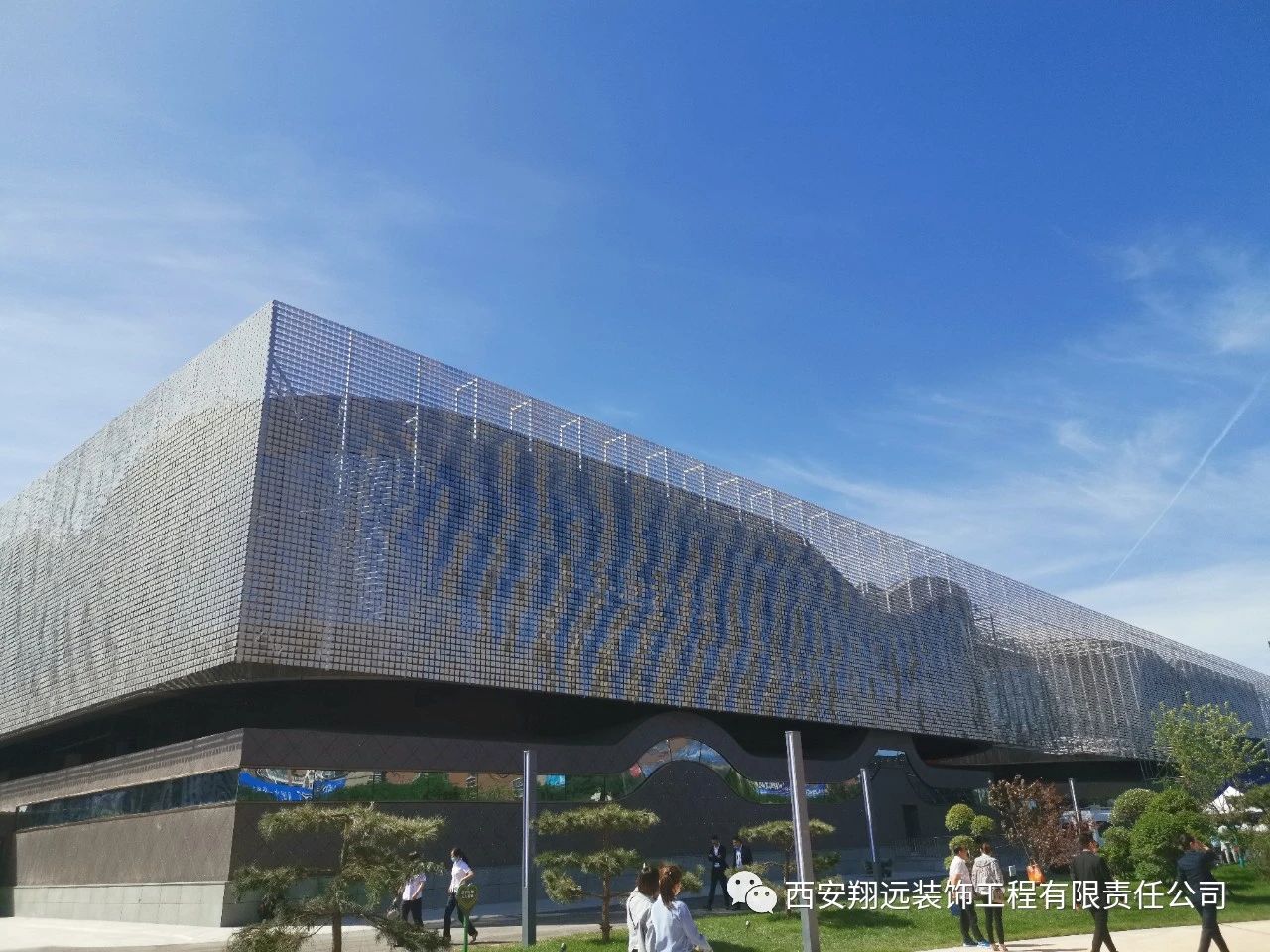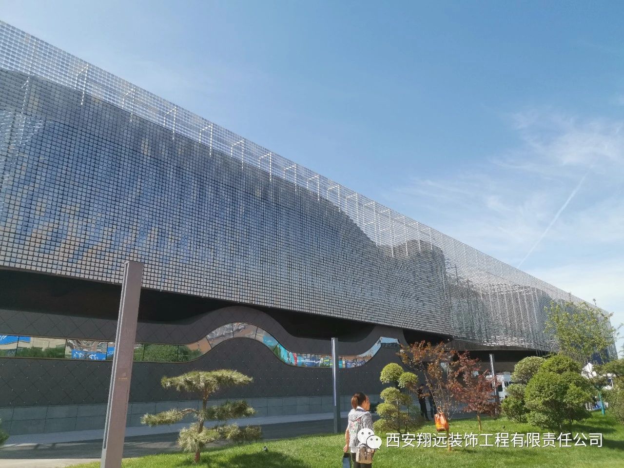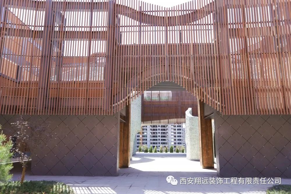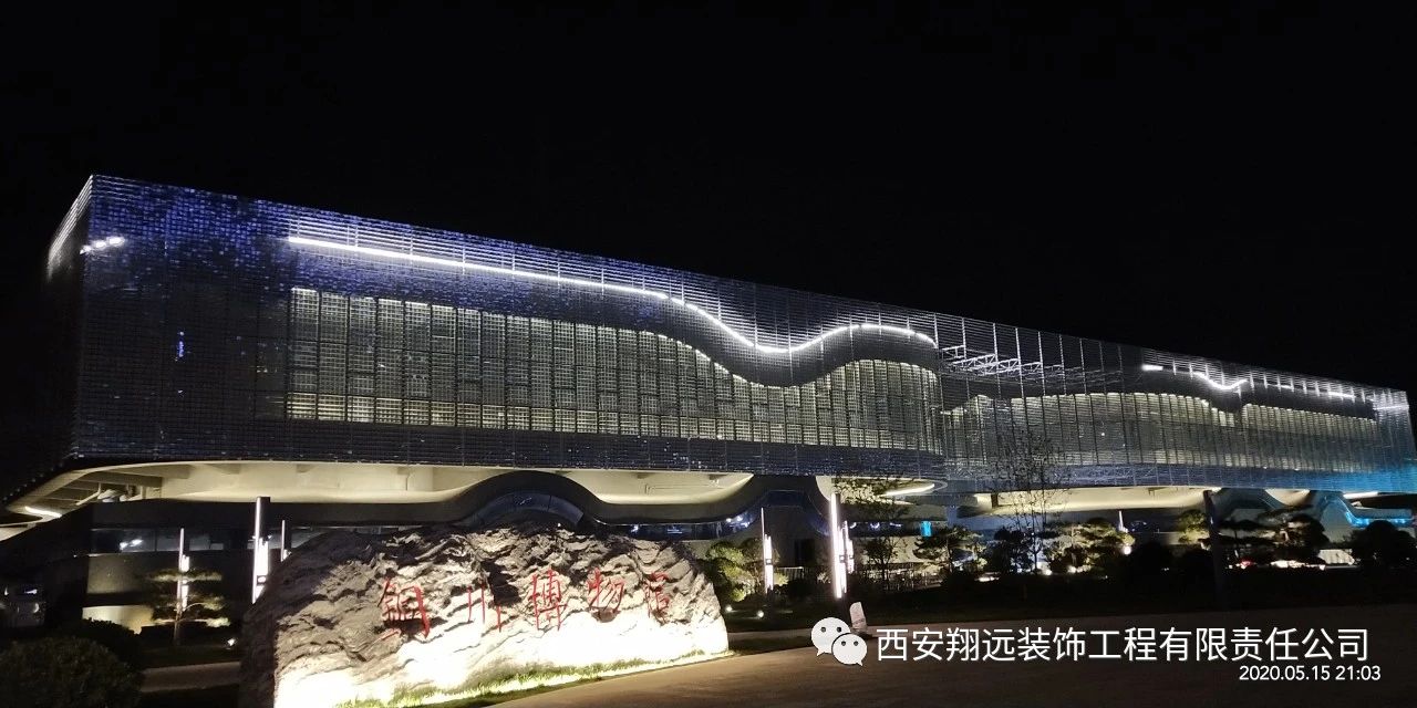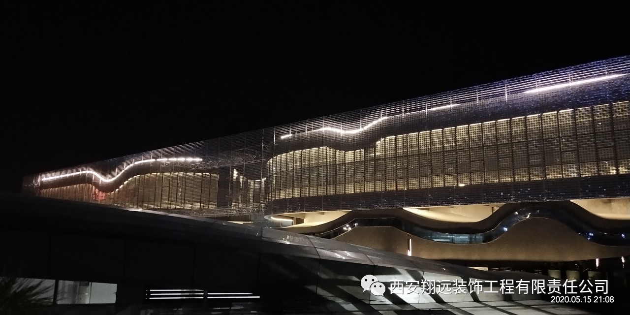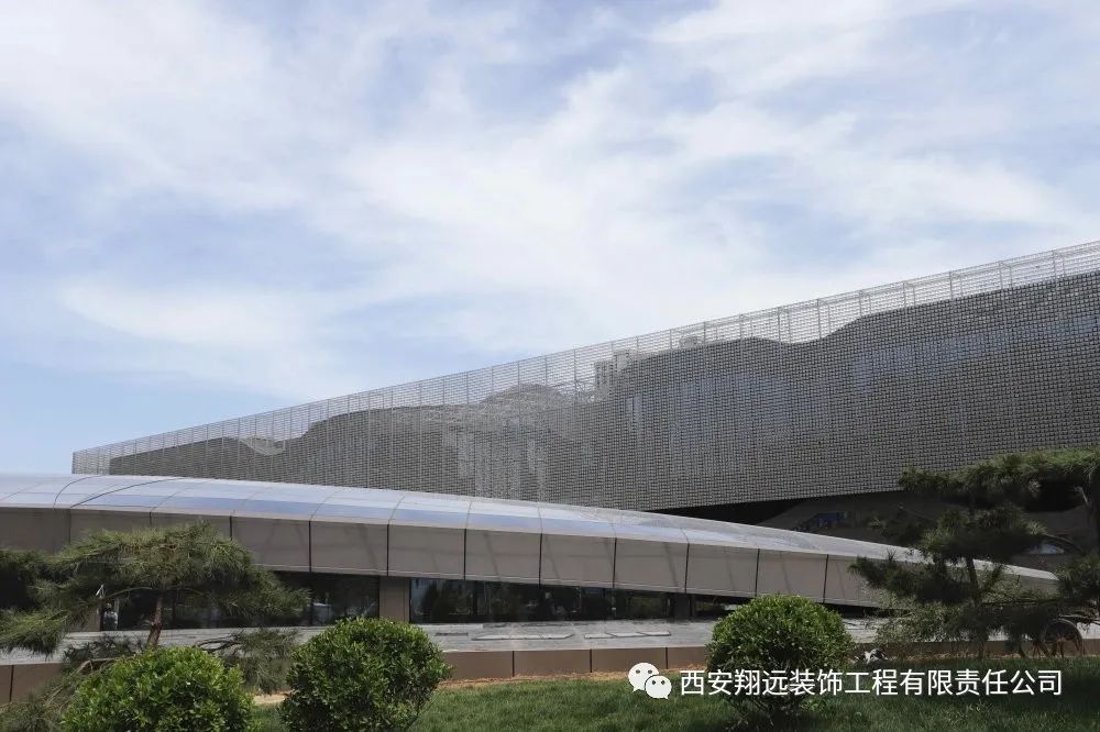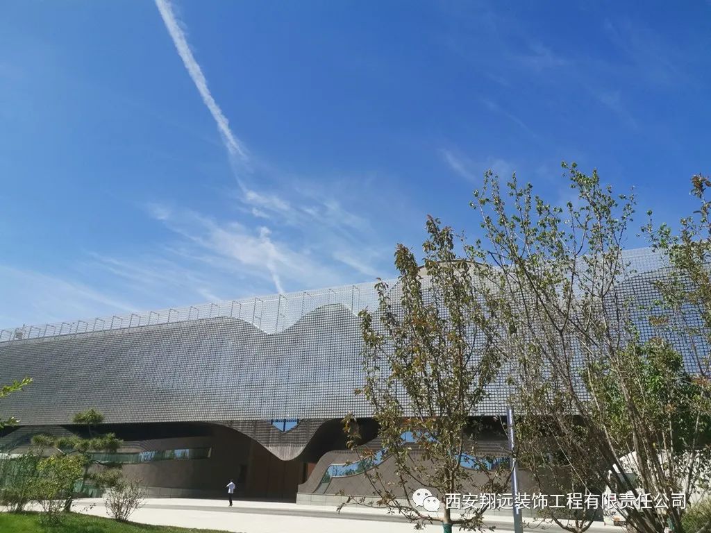 我司承建的风动幕墙由11万余件金属片组合而成,是目前我国西北仅有、国内maximum的风动幕墙建筑。清风徐来,如水波微动,以流动的曲线寓意山水铜川。