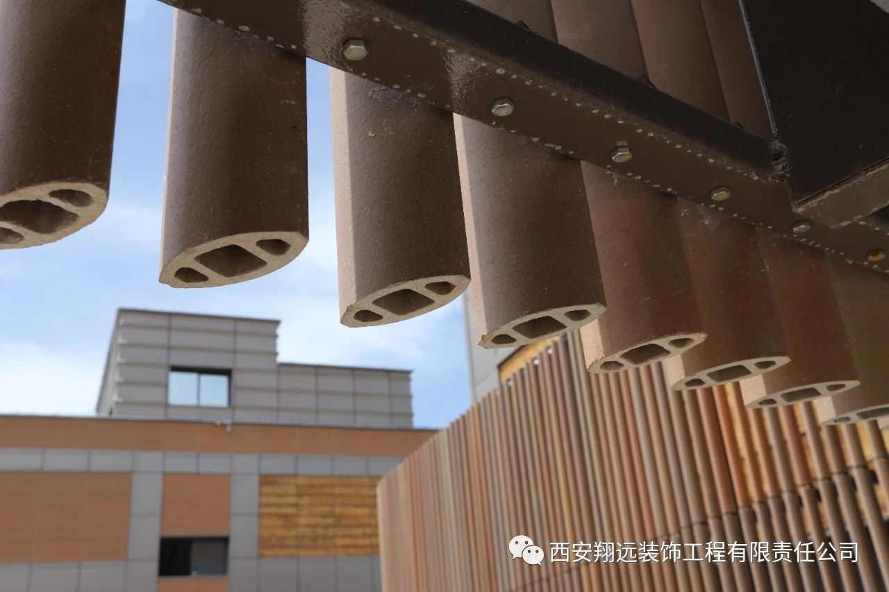 内墙贴面是由色彩浑然,风格古朴的陶板、陶棍、陶砖依次排列装饰,尽显陶文化古城的魅力。充分体现“十里窑场”耀州古韵。