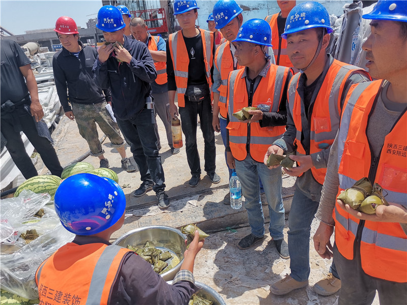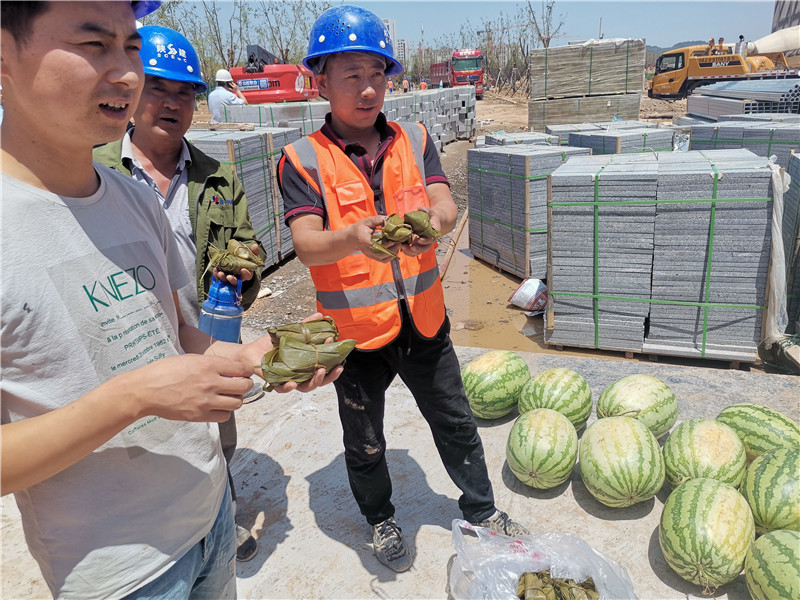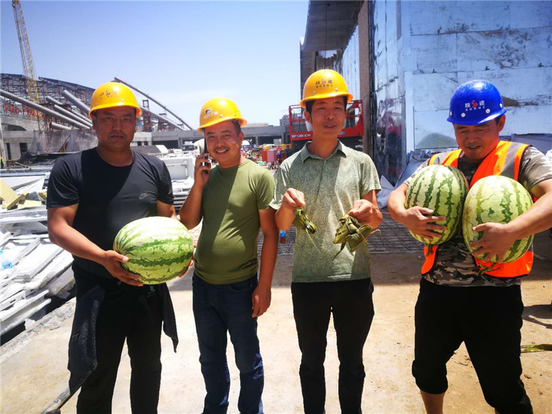 炎热酷暑,高温不断,感谢一线管理人员和作业人员的辛苦奋战,公司董事长亲自赶往施工现场慰问一线人员,同时公司特意为一线施工人员带去清凉和慰问,正值端午传统节日,热腾腾的糯米粽带去真切的关怀。