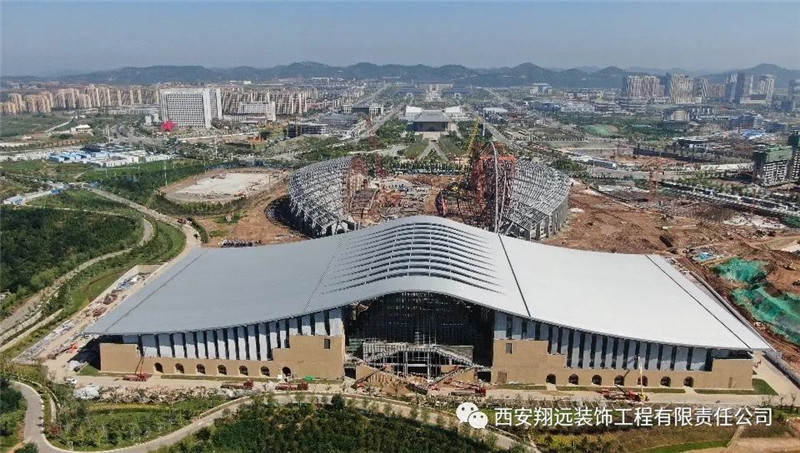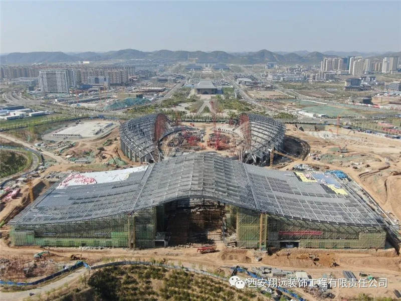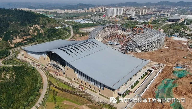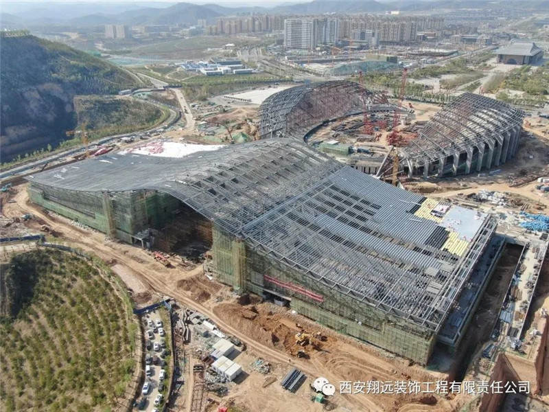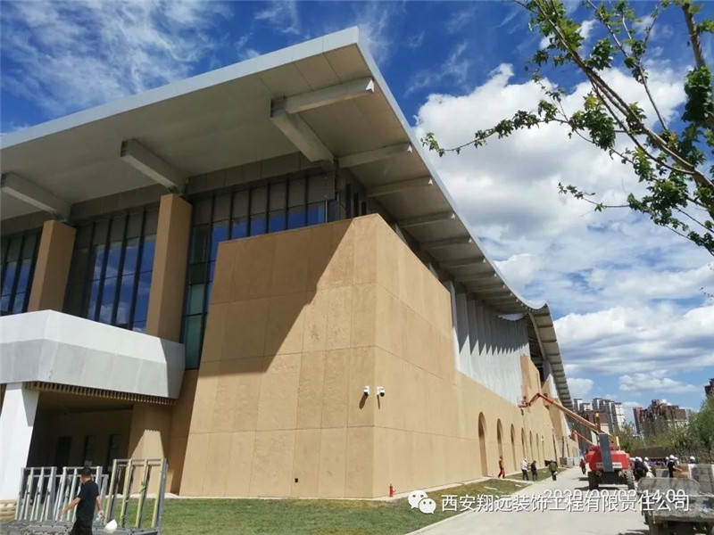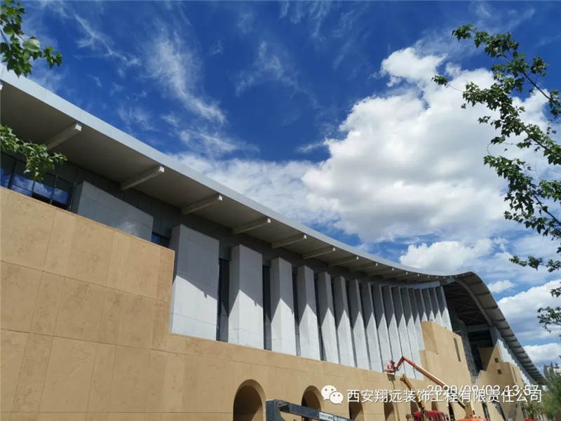 在疫情期间,下安康、守关中、去陕北。其中,延安新区全民健身运动中心项目位于新区中轴线南部,总建筑面积近20万平方米,落成后为延安地标项目,将作为2021年第十四届全运会国际式摔跤比赛场馆。我司参与建设幕墙及装饰工程,体量大,工期紧,该幕墙工程涉及多个创新创意特点、难点,多项施工工艺属于发明新型,外立面幕墙为西北maximum开缝式仿砂岩艺术混凝土幕墙、清水混凝土幕墙;政府部门、建设方、建筑总设计等社会各界关注度高。