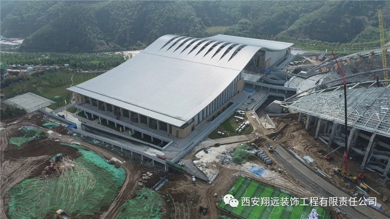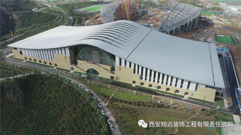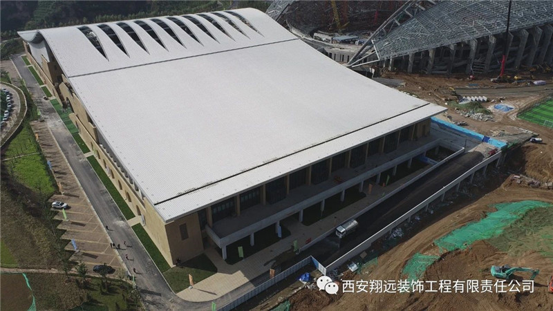 公司参与承建的体育馆外幕墙以及摔跤馆精装工程现已完工。其中外幕墙工程包含了西北the first大体量开缝式仿砂岩艺术混凝土幕墙、清水混凝土幕墙等多项工艺难点(该项目多项新工艺、新技术、实用新型已成功申请专利)。寒来暑往,昼夜奋战,翔远团队始终贯彻公司"创新、专业、品质、共赢"的核心理念,秉持"认真、执着"的翔远精神,科学管理、精准施策,打赢这场漂亮的"战役",让翔远工程在这片红色土地上熠熠生辉,亦为即将召开的第十四届全运会贡献出翔远力量!