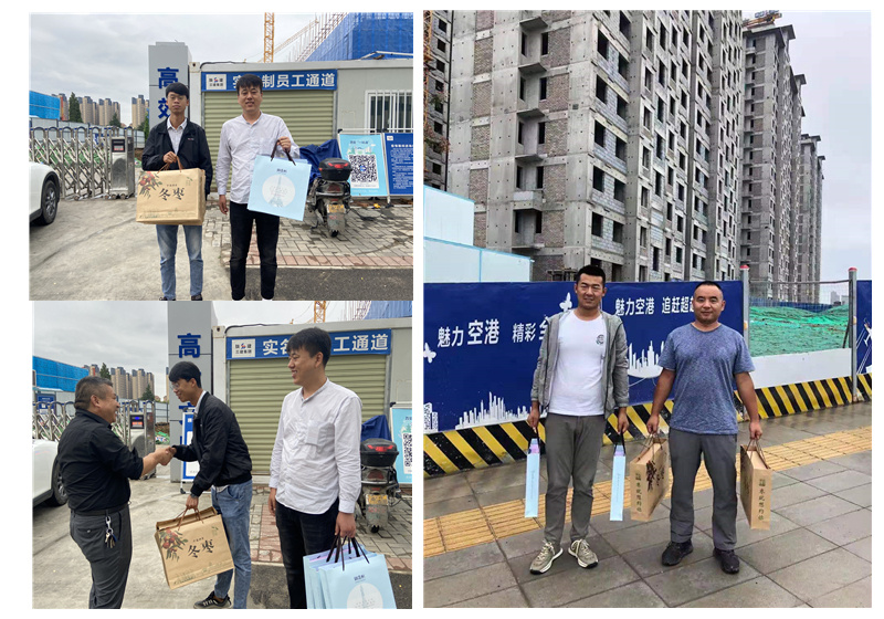 西安翔远承建的公共民生工程航天四号配水厂项目、铜川妇幼保健院项目、杨凌自贸大厦项目、曲江正和中心项目、星皓·锦樾项目,因工期紧任务重,一部分翔远家人在中秋之际依然奋斗在一线岗位上。公司领导心系一线,为大家送去中秋慰问和祝福,让大家在紧张繁忙的工作之中感受到家一般的温暖。
