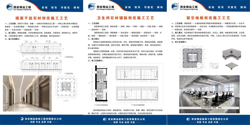 我司承接该项目政务办公精装修工程。该项目质量目标为争创鲁班奖,我司在接到项目任务后,配备专业项目管理、技术、施工团队,秉承公司一贯的“方案先行,样板引路,过程控制,一次成优”的项目管理理念,对装修图纸进行全方位深化、优化,第一时间拿出切实可行的关键部位创优深化方案,与建设方、总包方、设计单位及时沟通,提出合理化、创优化建议,在取得各方认可后,坚决执行至项目现场。现场项目部在施工中狠抓细节管理,在与其他专业穿插施工中合理安排工序,确保一次成优。