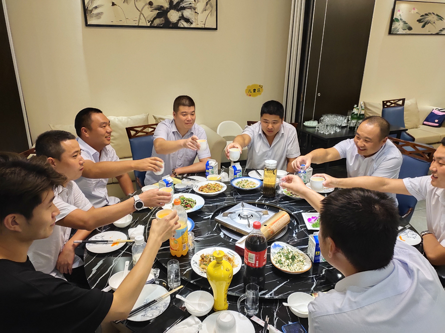会议结束后,公司给大家安排了丰富的晚餐,平时分布在各项目上的人员都回来了,借此机会,大家欢坐一起,互相交流彼此项目上的经验及遇到的困惑,大家共同举杯,倾吐心声,畅聊、畅饮,聊未来的规划,聊公司未来的发展,每个人眼中都充满光芒,相信在董总的带领下,翔远公司会越来越壮大,我们每个人追随公司的脚步也就更加坚定,最后祝贺我们第三季度全员大会圆满结束。