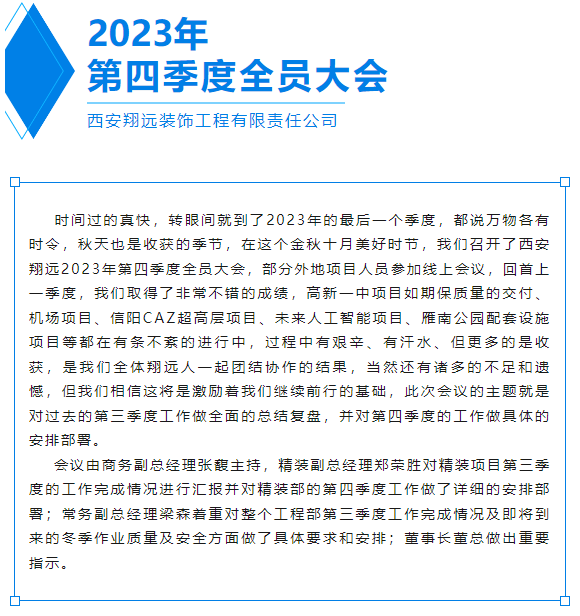 第四季度满怀激情,开启年末攻坚战||暨西安翔远2023年第四季度大会圆满召开