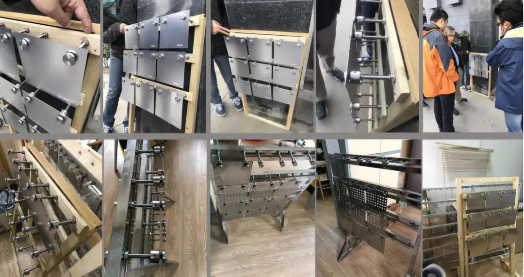 风动幕墙作为本项目的亮点,公司技术团队结合国内外现有技术进行了改进和研发,经过多次的风动试验,终落地实施的方案为工厂精心化组装产品,极大地减少了现场的施工量,同时将幕墙成本大幅度降低。