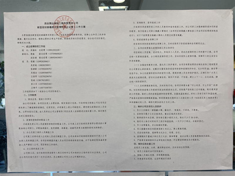 疫情期间,公司在响应国家政策下,出台各项详细制度,确保员工安全复工。