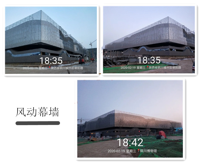 铜川博物馆是“十三五”期间全国地市级博物馆建设重点项目,是完善铜川城市功能、构建 城市综合文化体的重要民生工程,是提升文化软实力和积极融入“一带一路”国家战略的重要举措。本项目外幕墙工程采用40余种幕墙材料,多种幕墙形式组合,其中以风动幕墙系统标准化设计、精细化加工、装配式施工为项目亮点,为公司积累宝贵经验。