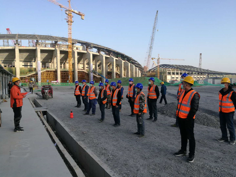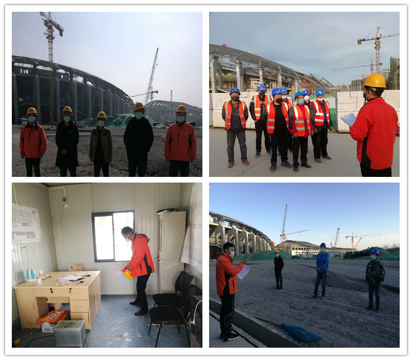 疫情期间,延安全民健身运动中心项目部一直积极与政府相关部门进行紧密对接,通过复工手续审核后,正式复工。项目部多次组织全员学习公司关于“项目复工疫情管理”的培训,提高工人复工防疫意识。做好进出人员的健康台账,对现场施工人员进行每天不少于两次的体温检测。
